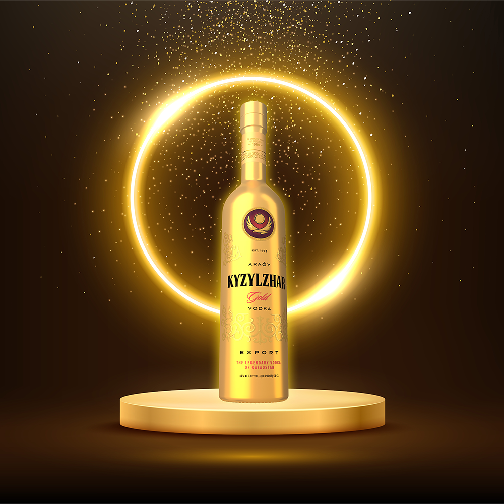 Каждая капля «KYZYLZHAR GOLD» — результат умелого соединения отборных сортов Казахстанской пшеницы и уникальной технологии с использованием золотого фильтра, который придает благородную мягкость напитку и раскрывает насыщенные оттенки вкуса.