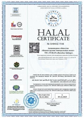我们自豪地宣布,TURAN 矿泉水和 BURABAY Natural Mineral Water 1991 已获得由哈萨克斯坦清真产业协会颁发的清真认证。